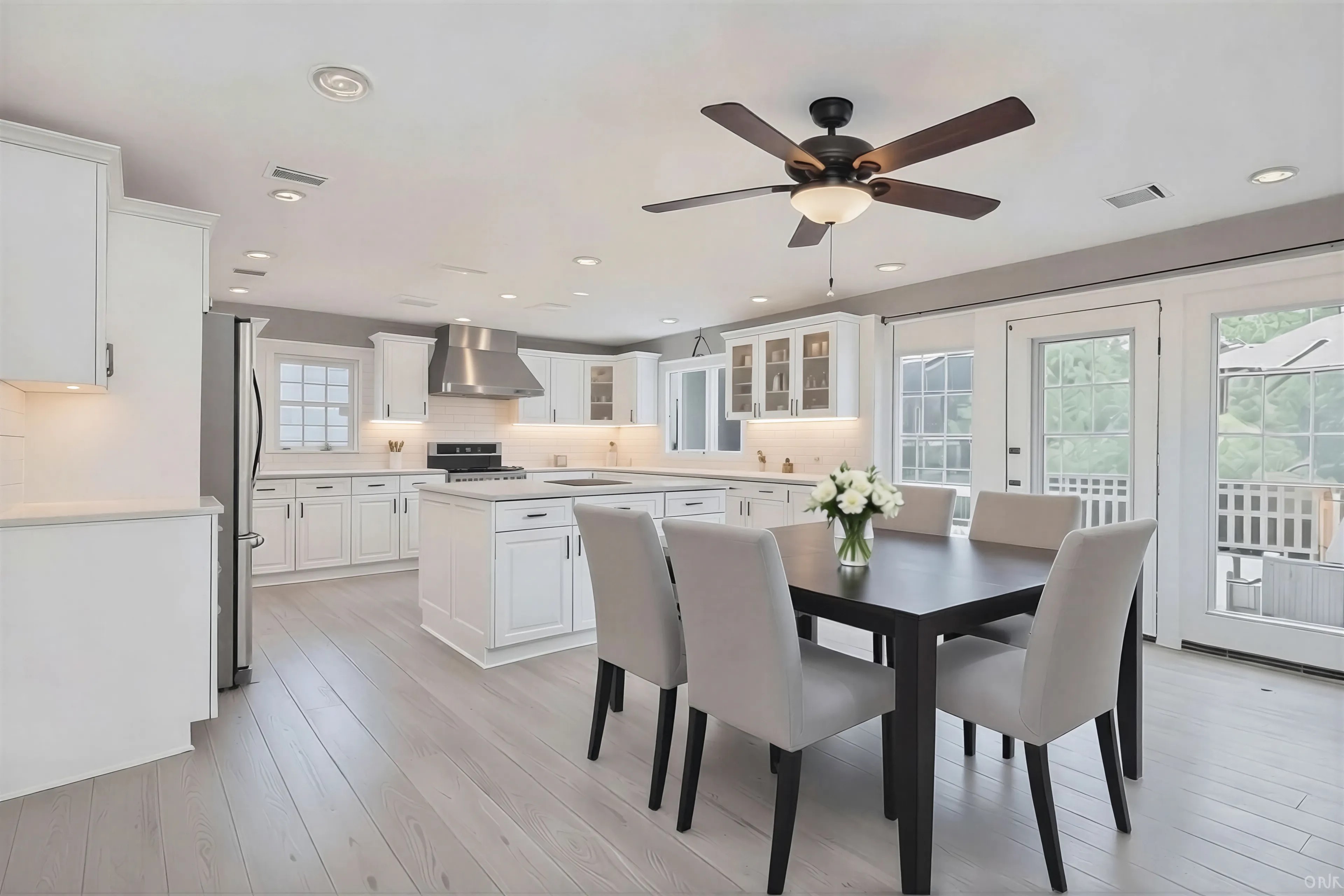 The transformation of a compact early 20th-century sidehall colonial into a full center-hall home — an addition that doubled the footprint and fundamentally reordered the spatial hierarchy of the house. The project delivered a new kitchen, formal living room, and two additional bedrooms, along with an attached two-car garage and a rear deck opening the home to its backyard. The result reads as a confident, well-proportioned colonial that shows no seam between old and new.